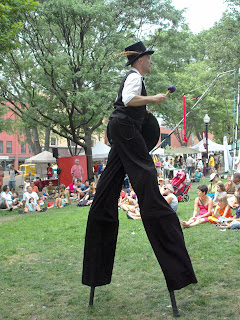 Gideon has been busy with homework, so I decided to take the girls to Burlington’s Church Street for the Festival of Fools. It is a performing arts festival of street performers from across America. We went last year when I was pregnant with Malia, so I thought it might be fun to go again.